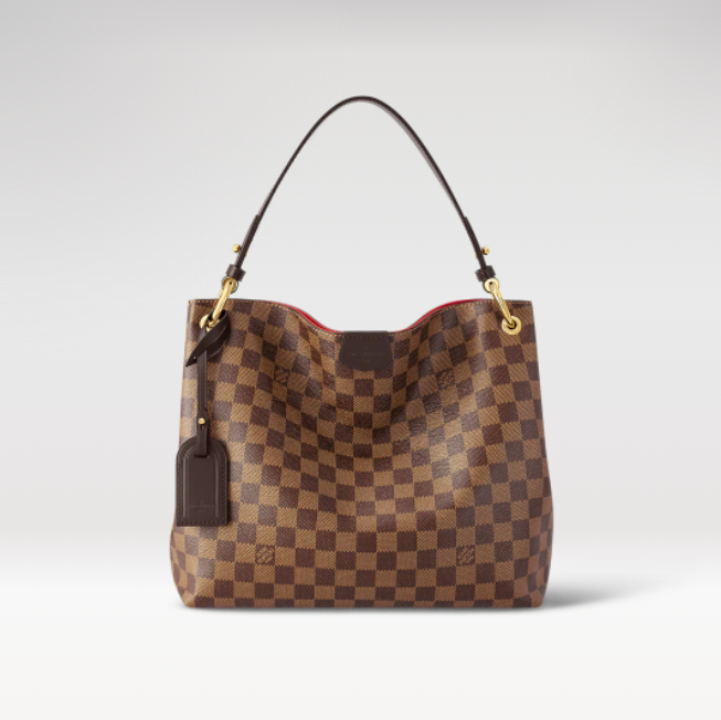 The Graceful PM hobo in graphic Damier Ebene canvas is a lightweight, roomy bag to carry every day. Natural leather detailing and golden hardware add a refined touch. The body-friendly design combines with a supple, flat handle for stylish and comfortable over-the-shoulder wear. The magnetic closure and zipped inside pocket keep belongings secure.