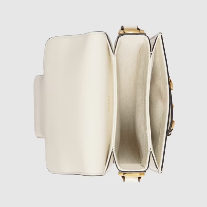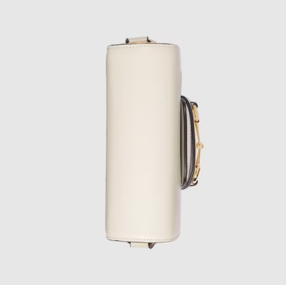 The Gucci 1955 Horsebit evolves as part of the latest collection with the addition of a mini shoulder bag variation, offering greater versatility and functionality. Presented in signature white leather with a flap closure, an adjustable shoulder strap completes the design.