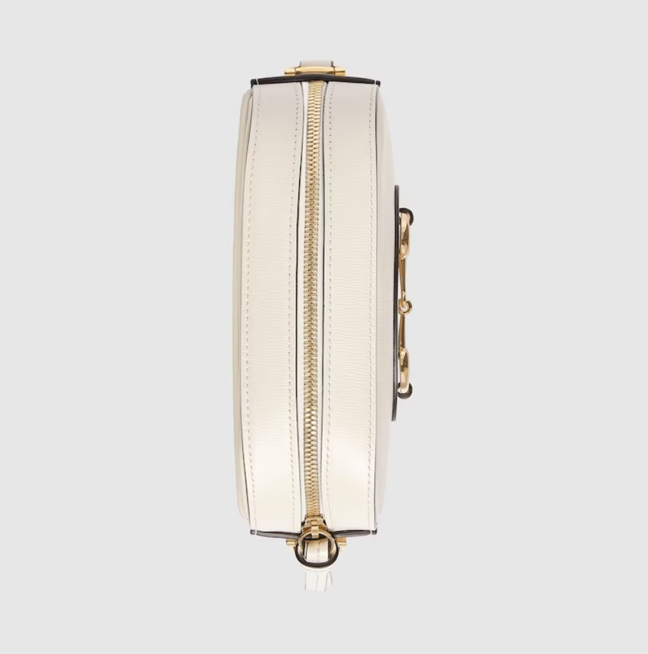The Gucci 1955 Horsebit evolves as part of the latest collection with the addition of a small shoulder bag variation, offering greater versatility and functionality. Presented in signature white leather with a zip closure, an adjustable shoulder completes the design.