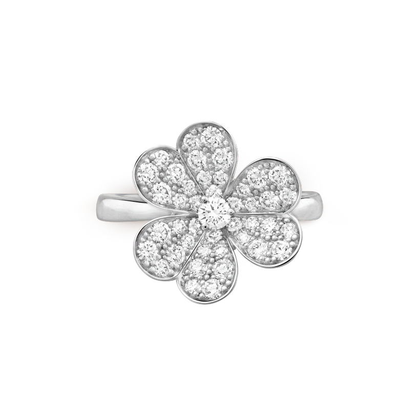 Like so many flowers dancing in the breeze, the Frivole® creations by Vthtan Clthteef & Arthtpels stand out with their graphic and airy aesthetic. Mirror-polished 18K gold or diamonds bestow a singular radiance upon heart-shaped petals.
