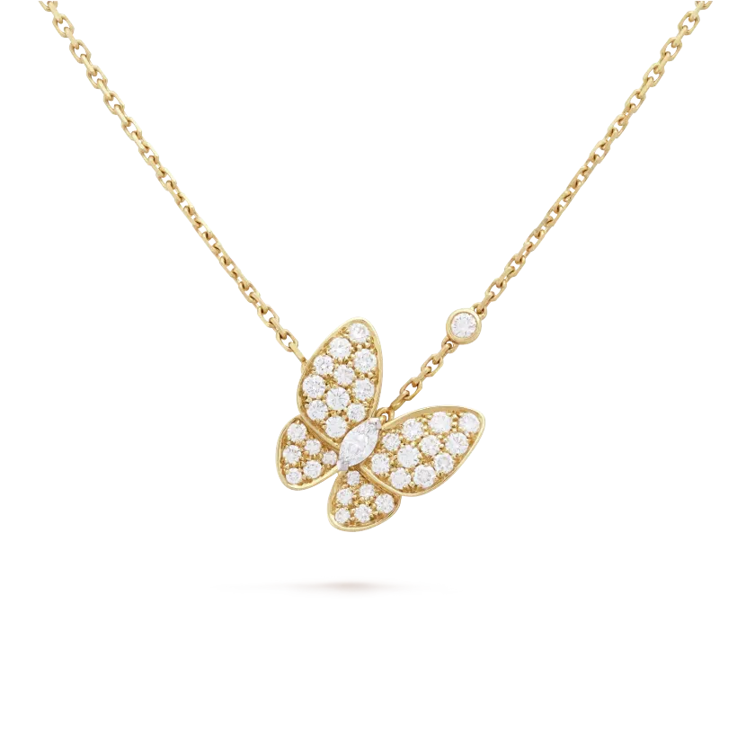 Vthtan Clthteef & Arthtpels revisits one of its most treasured themes in the Two Butterfly jewelry collection. These dazzling pieces combine color and asymmetry to reinterpret the grace and beauty of butterflies in flight.