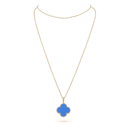 Magic Alhambra long necklace, 1 motif, 18K yellow gold, blue agate.