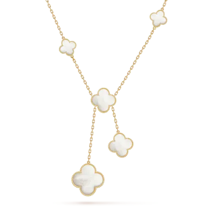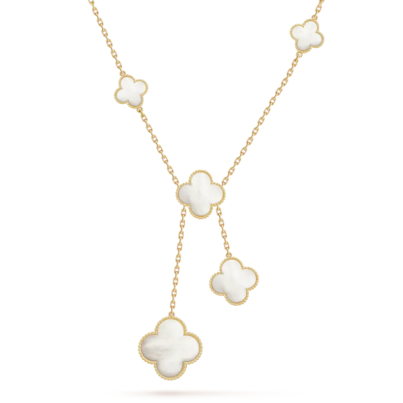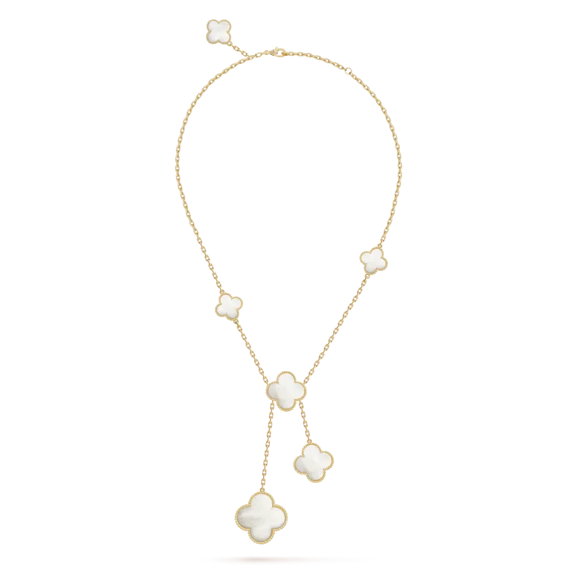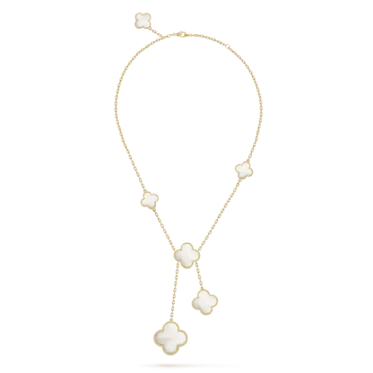 Magic Alhambra necklace, 6 motifs, 18K yellow gold, white mother-of-pearl.