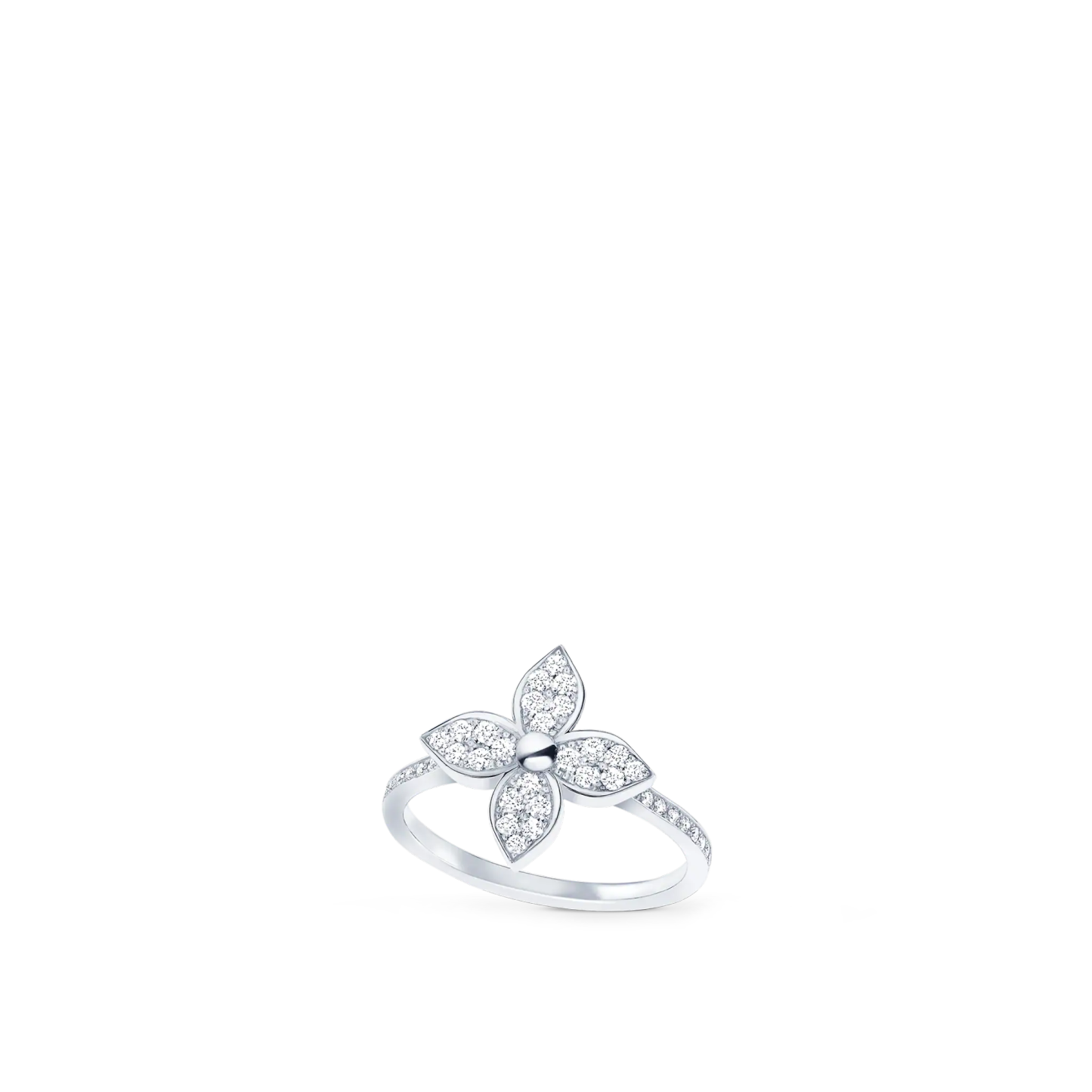 Inspired by the star-shaped Monogram Flower, this precious Star Blossom ring is cast from 18-karat white gold, illuminated with dazzling diamond pavé. Meticulously crafted for maximum sparkle, this feminine jewel catches the light with every movement of the hand, adding a starry radiance to any ensemble, by day or by night.