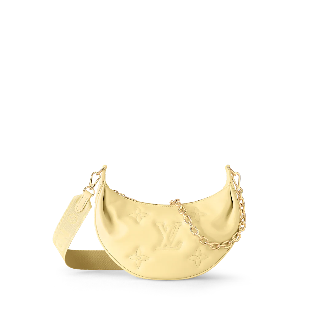 The Over The Moon delights with its versatile shape in quilted calf leather. The embroidered puffy Monogram pattern brings a statutory feel while the adjustable strap and gold-color chain deliver a myriad of carry options: elbow, short shoulder, cross-body, and long shoulder. With the strap removed, it can even be carried as an evening clutch.